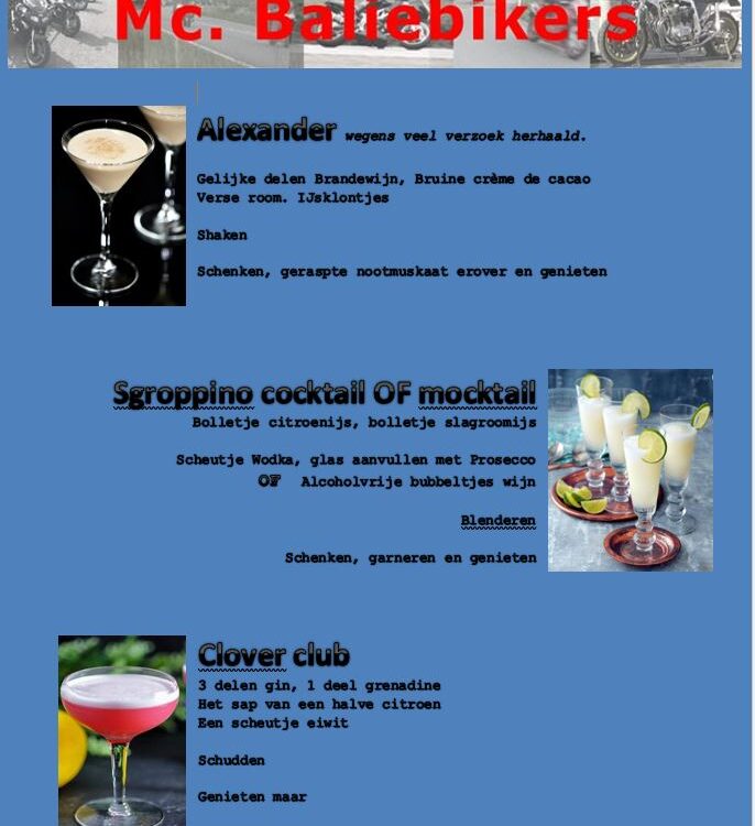 De drank staat klaar, laat de avond maar beginnen. Zaterdagavond 30 november is weer het laatste evenement van het MC-Baliebikers seizoen gehouden. Woensdagavond 18 december is