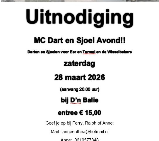28 maart 2026 worden weer de MC Dart en Sjoel kampioenschappen gehouden in D’n Balie.