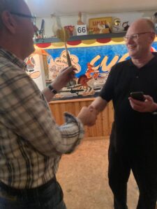 Siska riep gekscherend dat zij had gewonnen en Anne was er als de kippen bij om haar te feliciteren met de eerste prijs. Maar hij moest daarna toch schoorvoetend de prijs aan de echte winnaar geven. Dat was Cor. Tja een echte sjoeler kan het op alle bakken. Was het dit keer de 6e prijs van Cor op rij? Wel vaak in ieder geval, want hij was de tel kwijt(?).