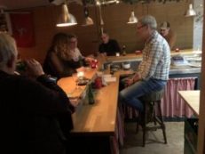 Vanwege de altijd grote deelname bij het sjoelen dit keer 2 sjoelbakken opgesteld. Die waren zo verschillend dat iedereen 5 maal op beide sjoelbakken ging spelen. 1 had grote gleuven met grote schijven. 1 had kleine gleuven en kleine schijven en was erg stroef. Marja had het nog wel in de olie gezet. Na afloop werd best wat gemopperd op die Eijking-bak, vooral door Cor. Maar een echte sjoeler kan het op alle bakken. 5 rondes per bak, dat duurde best lang en volgens Marja was iedereen best gaar. De volgende keer maar 3 rondes per bak ???