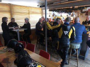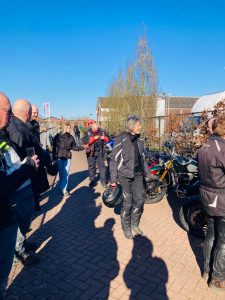 Overigens was de opkomst groot met 26 motoren waarvan 4 duo’s. We vertrokken dus in 2 groepen, de eerste geleid door Kees en de tweede door Anco. Na de rit nog even nababbelen.